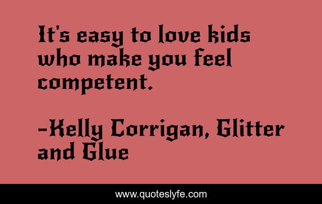 This page presents the quote "It's easy to love kids who make you feel competent.". Author of this quote is Kelly Corrigan, Glitter and Glue. .