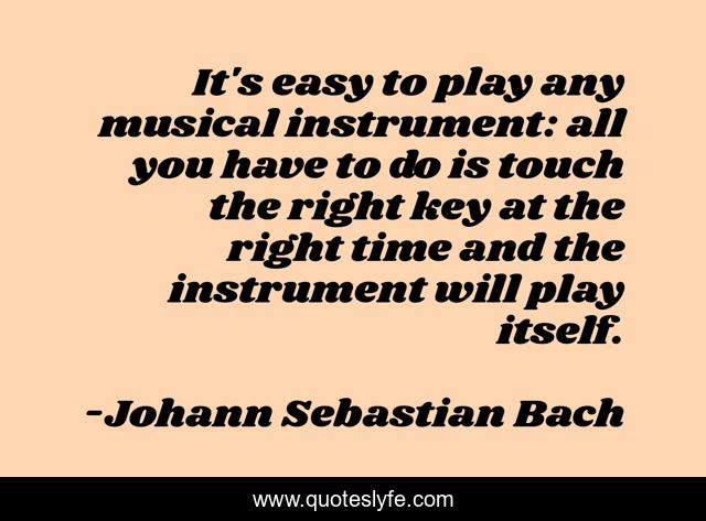 This page presents the quote "It's easy to play any musical instrument: all you have to do is touch the right key at the right time and the instrument will play itself.". Author of this quote is Johann Sebastian Bach. This quote is about instrument, music,.