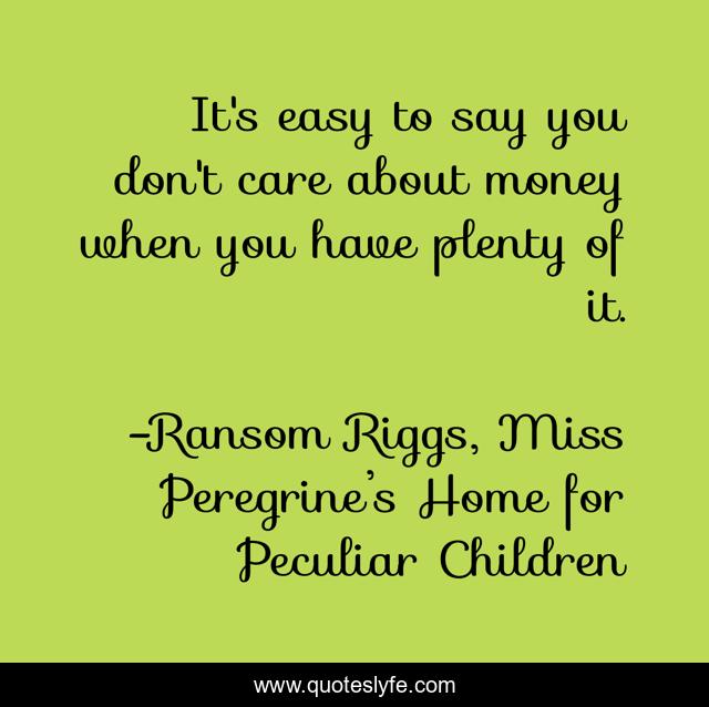 This page presents the quote "It's easy to say you don't care about money when you have plenty of it.". Author of this quote is Ransom Riggs, Miss Peregrine’s Home for Peculiar Children. .