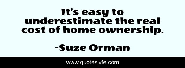 This page presents the quote "It's easy to underestimate the real cost of home ownership.". Author of this quote is Suze Orman. This quote is about real, underestimate, easy,.