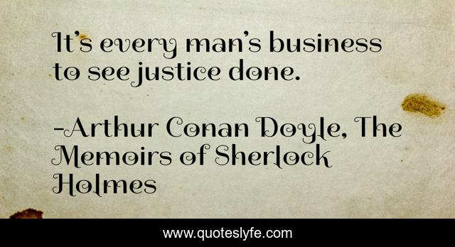 This page presents the quote "It’s every man’s business to see justice done.". Author of this quote is Arthur Conan Doyle, The Memoirs of Sherlock Holmes. This quote is about justice, equality, responsibility,.