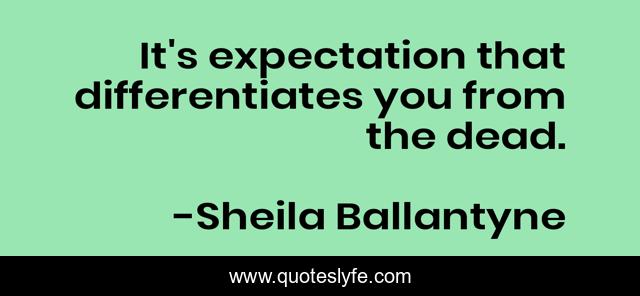 This page presents the quote "It's expectation that differentiates you from the dead.". Author of this quote is Sheila Ballantyne. .