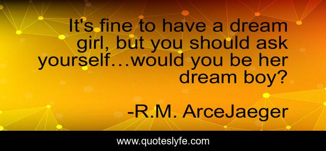 This page presents the quote "It's fine to have a dream girl, but you should ask yourself…would you be her dream boy?". Author of this quote is R.M. ArceJaeger. .