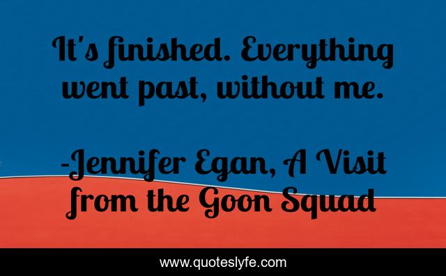 "Jennifer Egan, A Visit from the Goon Squad Quotes." Quoteslyfe.com, 2025. Tue. 09 Dec. 2025. <https://www.quoteslyfe.com/quote/It-s-finished-Everything-went-past-without-224153>.