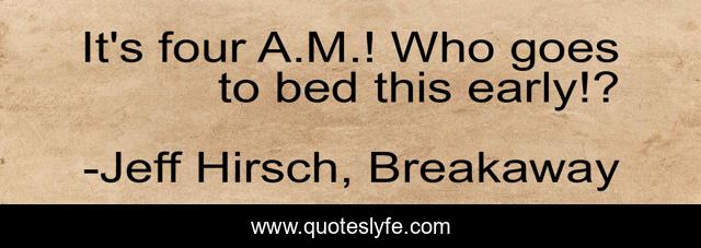 "Jeff Hirsch, Breakaway Quotes." Quoteslyfe.com, 2025. Fri. 05 Dec. 2025. <https://www.quoteslyfe.com/quote/It-s-four-A-M-Who-goes-199137>.