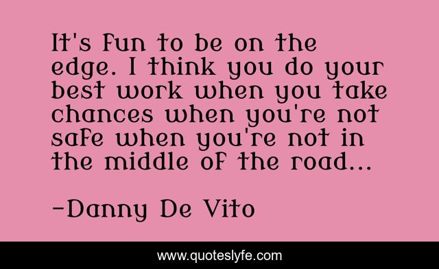 This page presents the quote "It's fun to be on the edge. I think you do your best work when you take chances when you're not safe when you're not in the middle of the road...". Author of this quote is Danny De Vito. This quote is about life, art,.