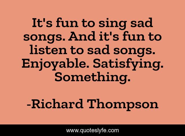 This page presents the quote "It's fun to sing sad songs. And it's fun to listen to sad songs. Enjoyable. Satisfying. Something.". Author of this quote is Richard Thompson. This quote is about fun, satisfying, listen,.
