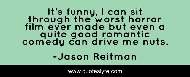 This page presents the quote "It's funny, I can sit through the worst horror film ever made but even a quite good romantic comedy can drive me nuts.". Author of this quote is Jason Reitman. This quote is about me, funny, good, comedy,.