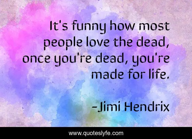 This page presents the quote "It's funny how most people love the dead, once you're dead, you're made for life.". Author of this quote is Jimi Hendrix. This quote is about funny, life, comedy, love, affection,.