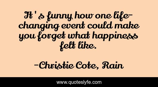This page presents the quote "It's funny how one life-changing event could make you forget what happiness felt like.". Author of this quote is Christie Cote, Rain. This quote is about teen, cancer, contemporary, leukemia, romance, realistic-fiction, young-adult,.