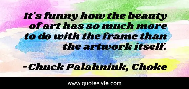 This page presents the quote "It's funny how the beauty of art has so much more to do with the frame than the artwork itself.". Author of this quote is Chuck Palahniuk, Choke. This quote is about frame, art, artwork,.