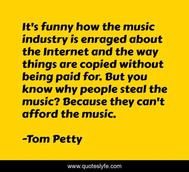 This page presents the quote "It's funny how the music industry is enraged about the Internet and the way things are copied without being paid for. But you know why people steal the music? Because they can't afford the music.". Author of this quote is Tom Petty. This quote is about funny, comedy, internet, people,.