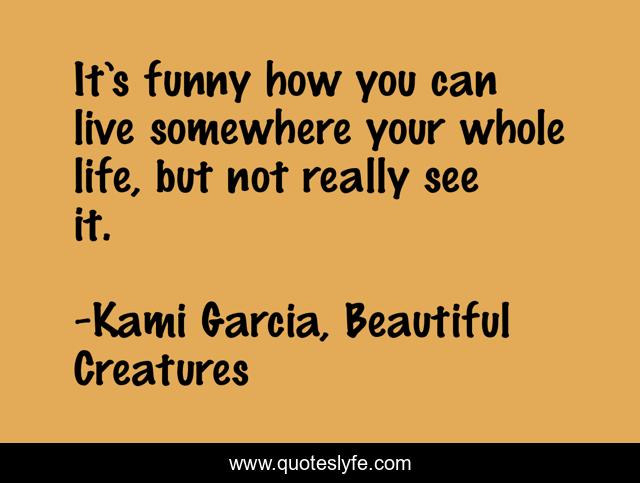 This page presents the quote "It’s funny how you can live somewhere your whole life, but not really see it.". Author of this quote is Kami Garcia, Beautiful Creatures. .