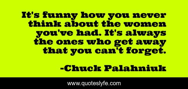 This page presents the quote "It's funny how you never think about the women you've had. It's always the ones who get away that you can't forget.". Author of this quote is Chuck Palahniuk. This quote is about think, women,.