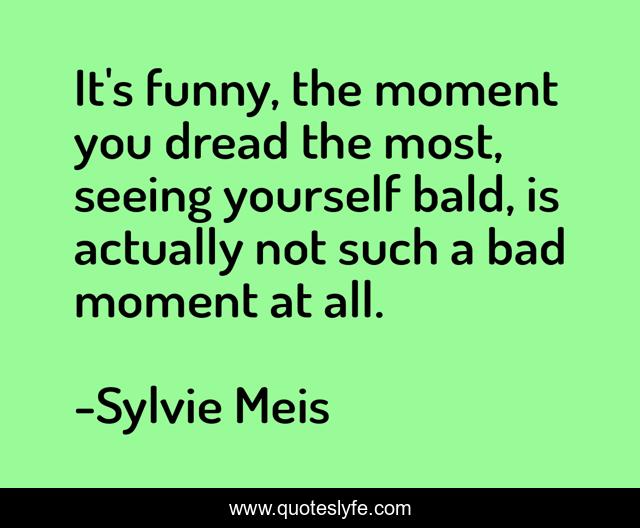 This page presents the quote "It's funny, the moment you dread the most, seeing yourself bald, is actually not such a bad moment at all.". Author of this quote is Sylvie Meis. This quote is about moment, yourself,.