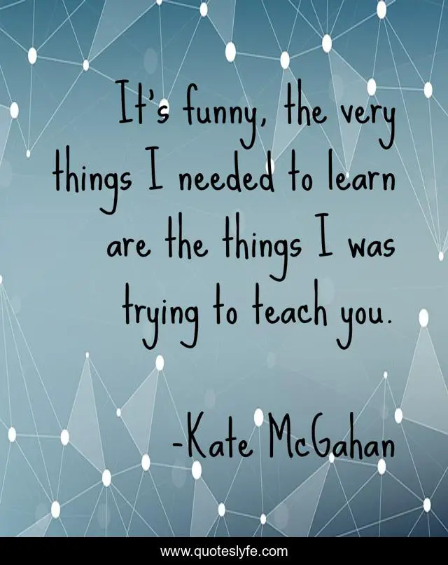 This page presents the quote "It's funny, the very things I needed to learn are the things I was trying to teach you.". Author of this quote is Kate McGahan. This quote is about teach, learn, mirror,.