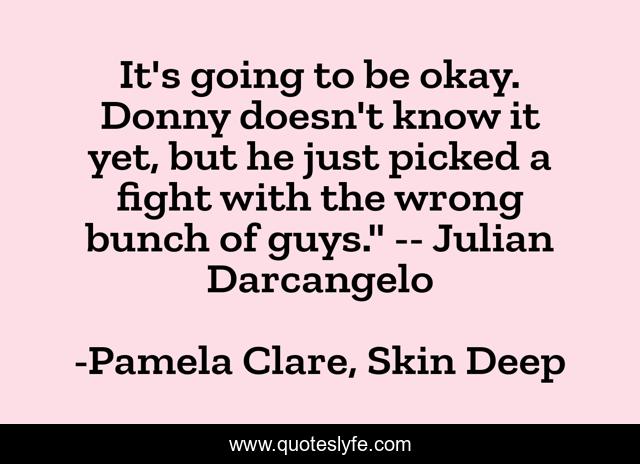 This page presents the quote "It's going to be okay. Donny doesn't know it yet, but he just picked a fight with the wrong bunch of guys." -- Julian Darcangelo". Author of this quote is Pamela Clare, Skin Deep. This quote is about protectiveness, romantic-suspense,.