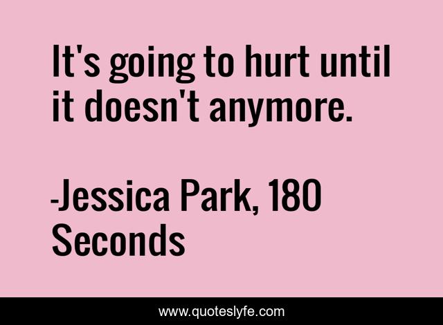 This page presents the quote "It's going to hurt until it doesn't anymore.". Author of this quote is Jessica Park, 180 Seconds. This quote is about jessica-park, 180-seconds, hurt,.