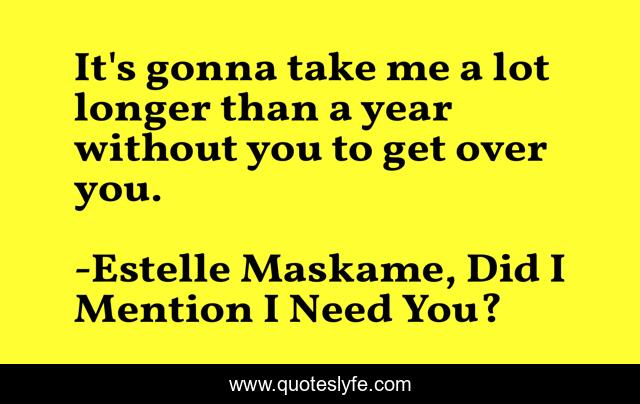 This page presents the quote "It's gonna take me a lot longer than a year without you to get over you.". Author of this quote is Estelle Maskame, Did I Mention I Need You?. This quote is about romance, ya, novel, young-adult, contemporary,.
