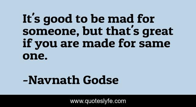 This page presents the quote "It's good to be mad for someone, but that's great if you are made for same one.". Author of this quote is Navnath Godse. This quote is about life, love, made-for-each-other, madness, affection, luck,.