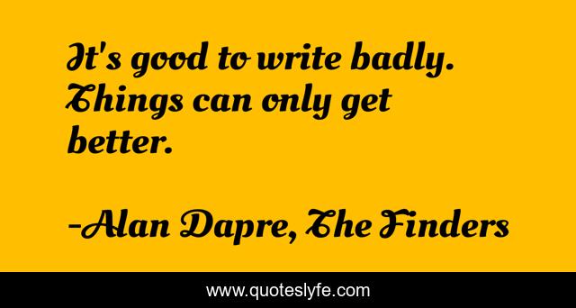 "Alan Dapre, The Finders Quotes." Quoteslyfe.com, 2025. Fri. 05 Dec. 2025. <https://www.quoteslyfe.com/quote/It-s-good-to-write-badly-Things-223203>.