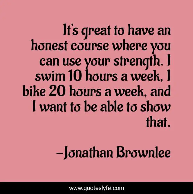This page presents the quote "It's great to have an honest course where you can use your strength. I swim 10 hours a week, I bike 20 hours a week, and I want to be able to show that.". Author of this quote is Jonathan Brownlee. This quote is about week, great, bike,.