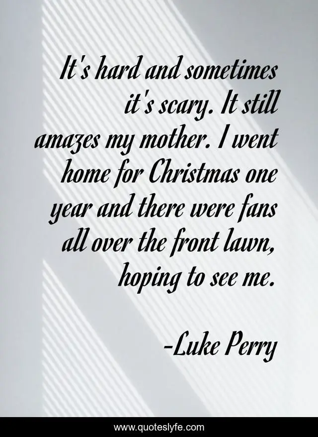 This page presents the quote "It's hard and sometimes it's scary. It still amazes my mother. I went home for Christmas one year and there were fans all over the front lawn, hoping to see me.". Author of this quote is Luke Perry. This quote is about me, home, mother,.
