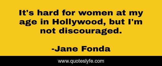 This page presents the quote "It's hard for women at my age in Hollywood, but I'm not discouraged.". Author of this quote is Jane Fonda. This quote is about hollywood, hard, women,.