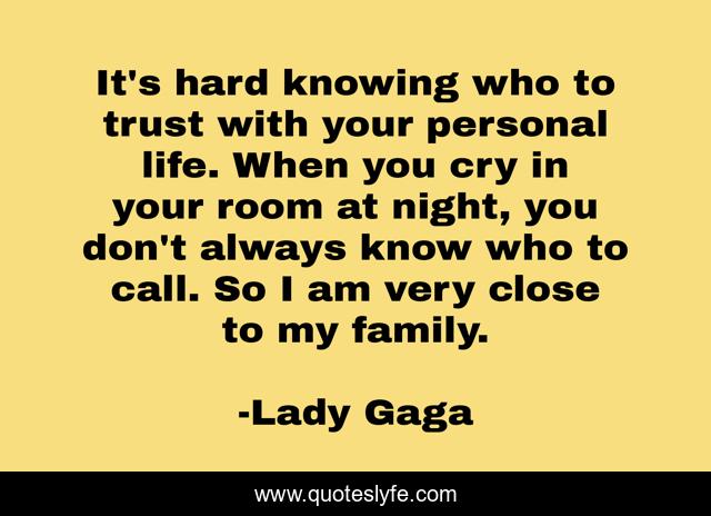 This page presents the quote "It's hard knowing who to trust with your personal life. When you cry in your room at night, you don't always know who to call. So I am very close to my family.". Author of this quote is Lady Gaga. This quote is about life, family,.