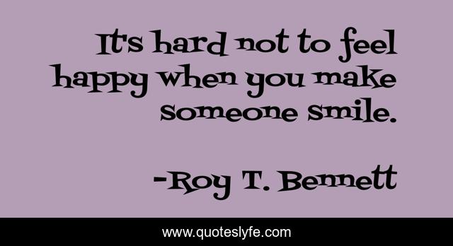 This page presents the quote "It's hard not to feel happy when you make someone smile.". Author of this quote is Roy T. Bennett. This quote is about living, inspiring, inspire, inspiration, positive, positive-affirmation, life, confidence, optimism,.