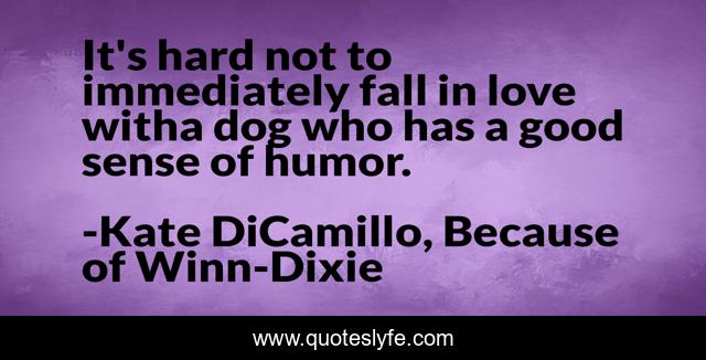 This page presents the quote "It's hard not to immediately fall in love witha dog who has a good sense of humor.". Author of this quote is Kate DiCamillo, Because of Winn-Dixie. .