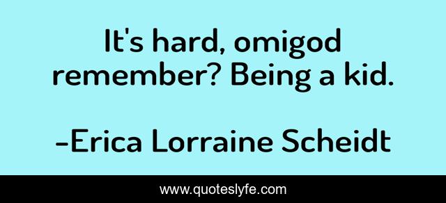 This page presents the quote "It's hard, omigod remember? Being a kid.". Author of this quote is Erica Lorraine Scheidt. This quote is about youth, kids, childhood, adolescence,.