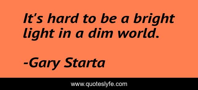 This page presents the quote "It's hard to be a bright light in a dim world.". Author of this quote is Gary Starta. This quote is about shine, dim, prolific, light,.