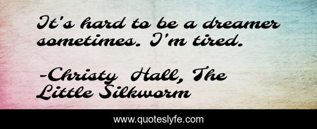 This page presents the quote "It's hard to be a dreamer sometimes. I'm tired.". Author of this quote is Christy Hall, The Little Silkworm. This quote is about writers, writers-life, writers-world, writing,.
