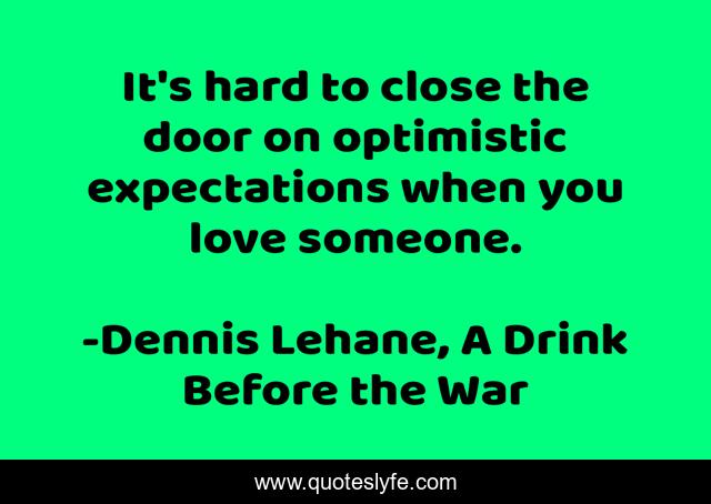 This page presents the quote "It's hard to close the door on optimistic expectations when you love someone.". Author of this quote is Dennis Lehane, A Drink Before the War. This quote is about relationships, heartbreak, love, hope, affection,.
