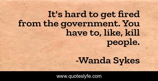 This page presents the quote "It's hard to get fired from the government. You have to, like, kill people.". Author of this quote is Wanda Sykes. This quote is about fired, people,.