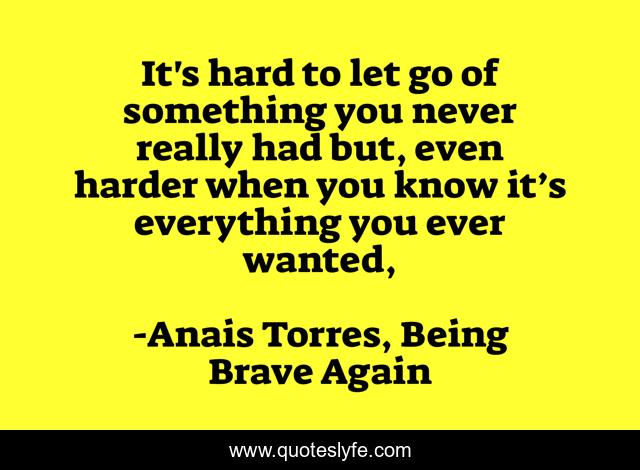 This page presents the quote "It's hard to let go of something you never really had but, even harder when you know it’s everything you ever wanted, ". Author of this quote is Anais Torres, Being Brave Again. This quote is about breakup, love, affection,.
