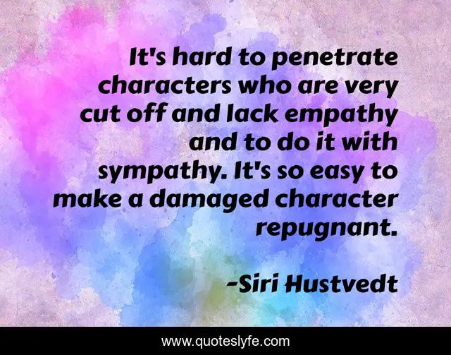 This page presents the quote "It's hard to penetrate characters who are very cut off and lack empathy and to do it with sympathy. It's so easy to make a damaged character repugnant.". Author of this quote is Siri Hustvedt. This quote is about empathy, character, easy,.