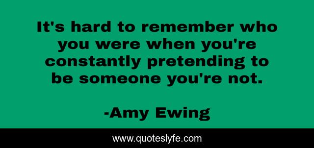 This page presents the quote "It's hard to remember who you were when you're constantly pretending to be someone you're not.". Author of this quote is Amy Ewing. This quote is about be-yourself, self-acceptance, truthfulness,.