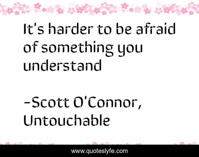This page presents the quote "It's harder to be afraid of something you understand". Author of this quote is Scott O'Connor, Untouchable. This quote is about fear, understanding,.