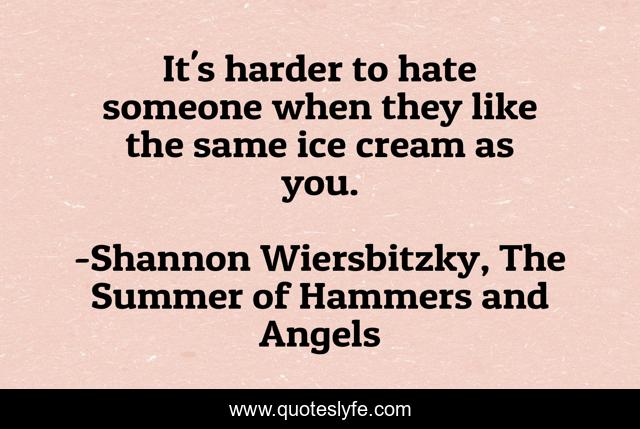 This page presents the quote "It's harder to hate someone when they like the same ice cream as you.". Author of this quote is Shannon Wiersbitzky, The Summer of Hammers and Angels. This quote is about ice-cream, friends,.