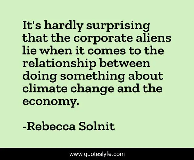 This page presents the quote "It's hardly surprising that the corporate aliens lie when it comes to the relationship between doing something about climate change and the economy.". Author of this quote is Rebecca Solnit. This quote is about lie, change, climate change,.