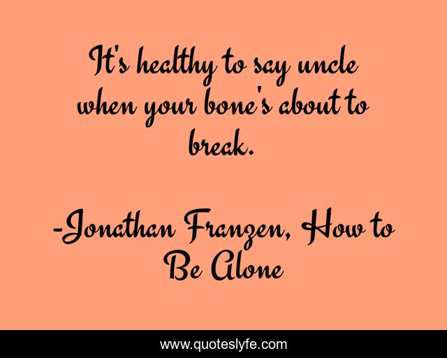This page presents the quote "It's healthy to say uncle when your bone's about to break.". Author of this quote is Jonathan Franzen, How to Be Alone. .