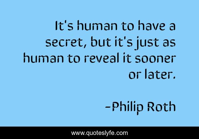 This page presents the quote "It's human to have a secret, but it's just as human to reveal it sooner or later.". Author of this quote is Philip Roth. .