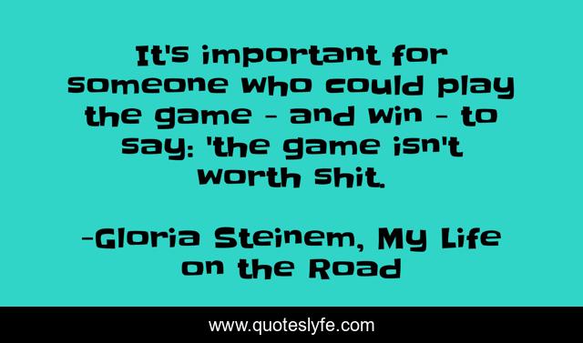 This page presents the quote "It's important for someone who could play the game - and win - to say: 'the game isn't worth shit.". Author of this quote is Gloria Steinem, My Life on the Road. This quote is about enthusiasm, life, journey, inspirational,.