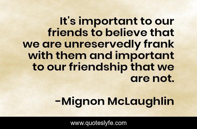 This page presents the quote "It's important to our friends to believe that we are unreservedly frank with them and important to our friendship that we are not.". Author of this quote is Mignon McLaughlin. .