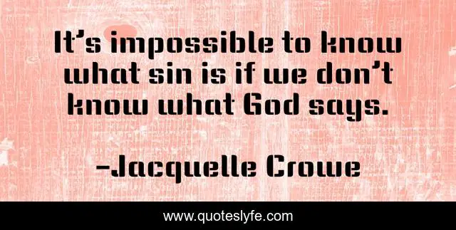 This page presents the quote "It’s impossible to know what sin is if we don’t know what God says.". Author of this quote is Jacquelle Crowe. .