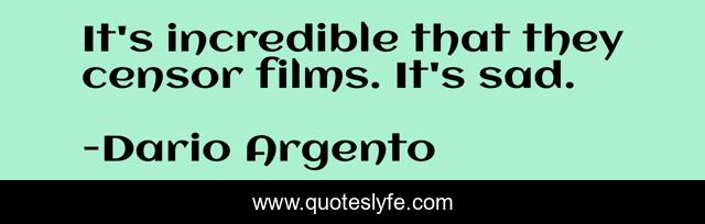 This page presents the quote "It's incredible that they censor films. It's sad.". Author of this quote is Dario Argento. This quote is about films, censor, incredible,.