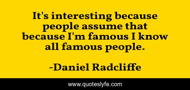 This page presents the quote "It's interesting because people assume that because I'm famous I know all famous people.". Author of this quote is Daniel Radcliffe. This quote is about famous people, people,.