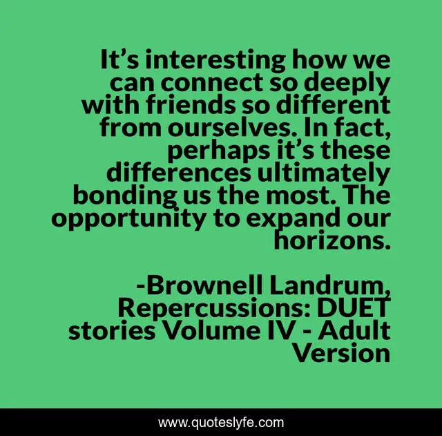 "Brownell Landrum, Repercussions: DUET stories Volume IV - Adult Version Quotes." Quoteslyfe.com, 2025. Sat. 06 Dec. 2025. <https://www.quoteslyfe.com/quote/It-s-interesting-how-we-can-connect-126764>.